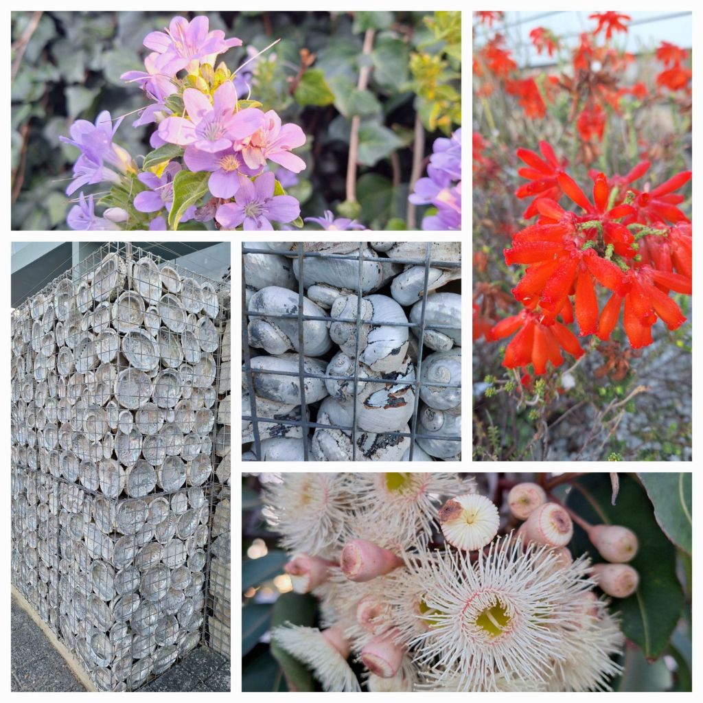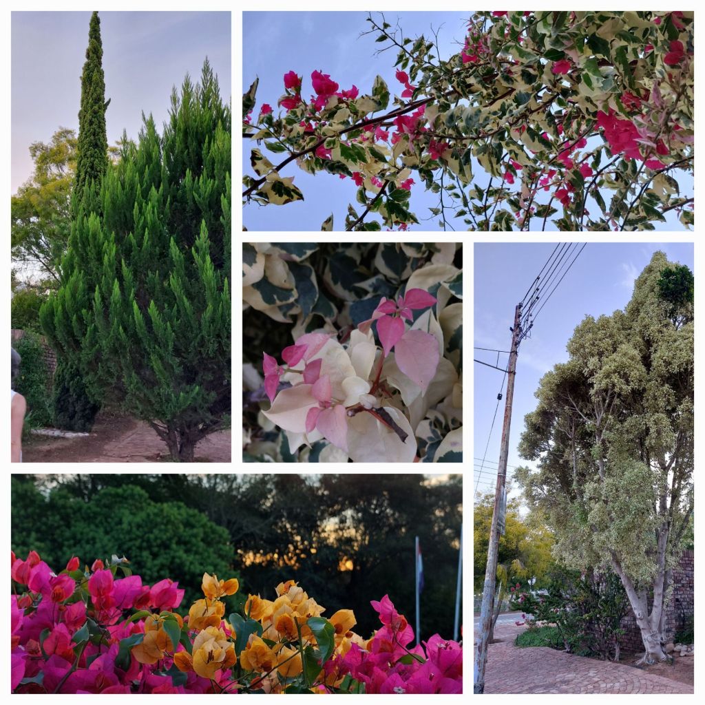 Gartenzaun mal anders (u.l. und mitte) – hübsche Blüten überall, nicht zuletzt an den Bäumen (u.r. das ist ein heller Eukalyptus)