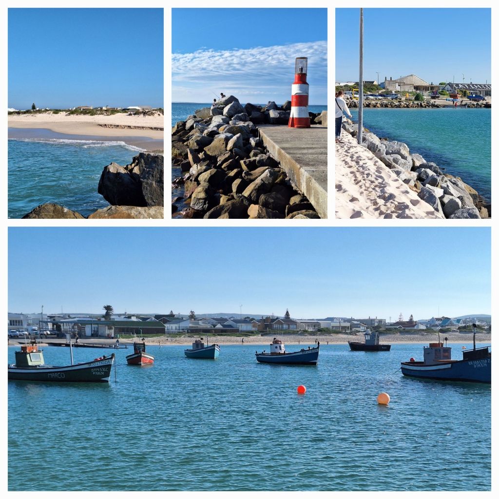 Sofort nachdem wir zurück sind fahren wir Richtung Hafen in Struisbaii, denn hier gibt es riesige zahme Rochen (siehe oben links), die wir unbedingt sehen wollen. Ausserdem haben wir Hunger und hoffen dort auf ein Restaurant. Leider vergebens.