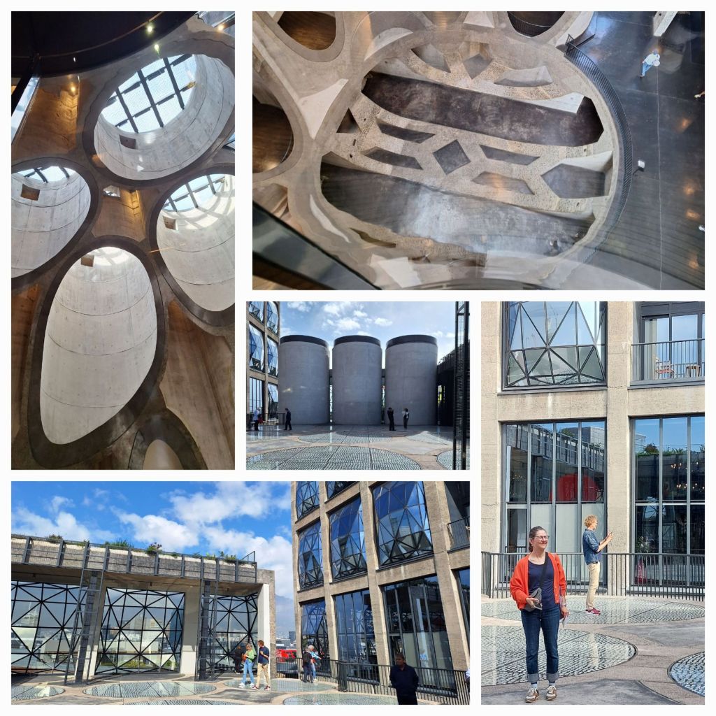 Die Treppenanlage ist ebenso eine Wucht wie die im Atrium befindlichen gläsernen Aufzüge – für meine Schwester ist beides gleichermaßen eine Katastrophe, sie arbeitet sich trotzdem nach oben – aber runter wird es dann noch schwieriger und einen Teil der Ausstellung lässt sie (leider) komplett sausen.