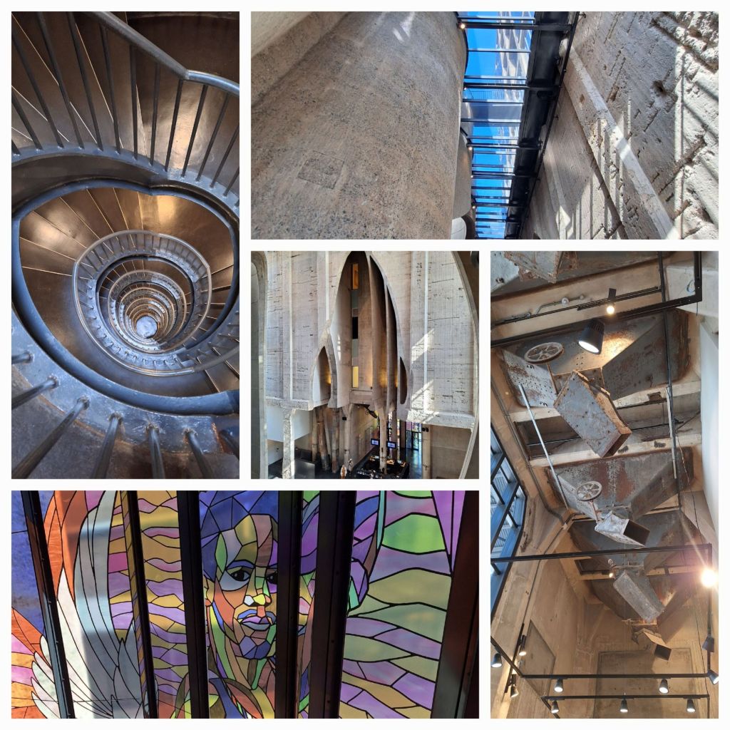 Das Gebäude hat tatsächlich etwas sakrales, wirkt wahnsinnig grosszügig durch ein Atrium und das einfallende Licht dank Buntglasfenstern sehr stimmungsvoll.