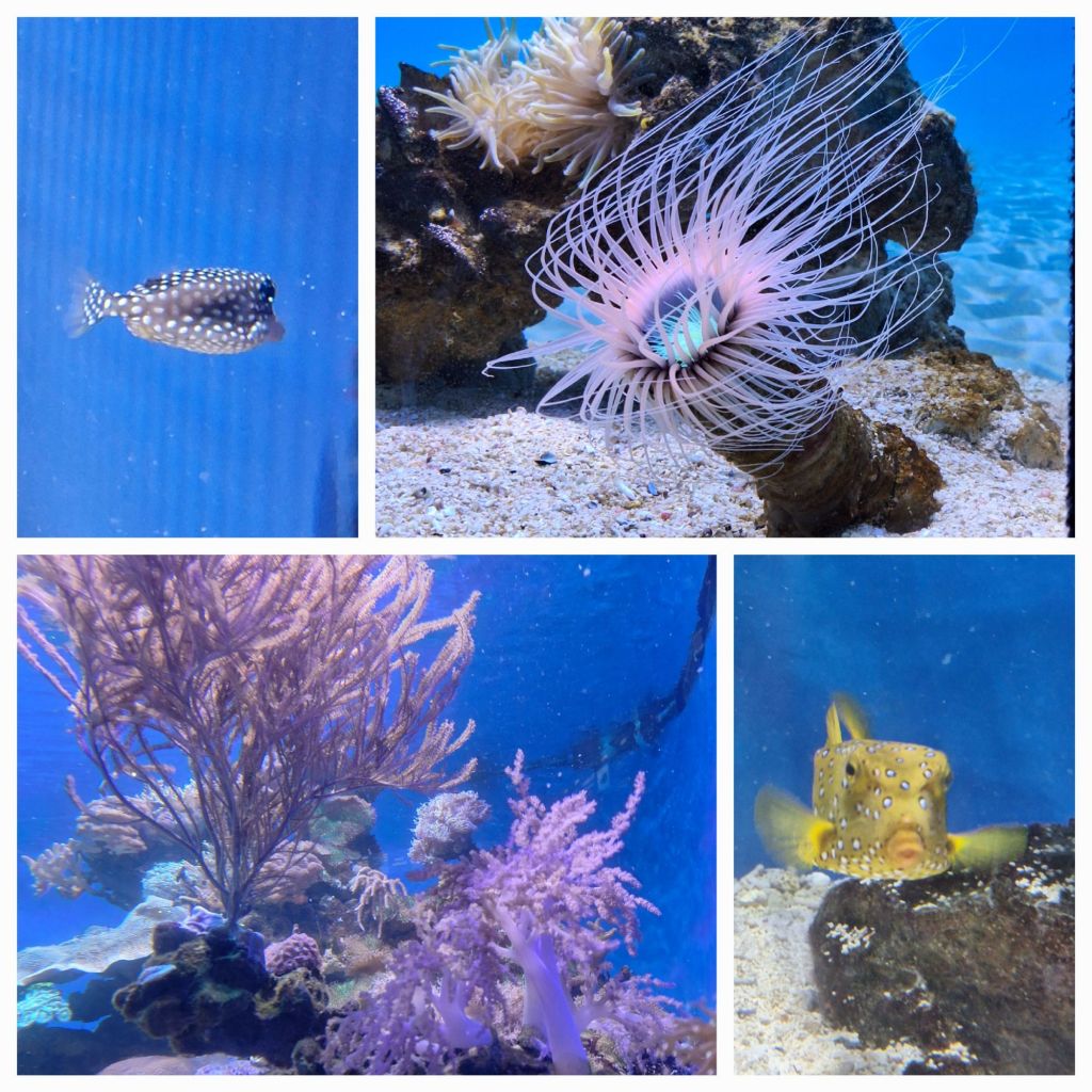Auf dem Weg zum Aquarium und kaum drinnen, schon finde ich nicht nur Nemo, sondern auch Dory!Einfach nur faszinierend, alle Formen, alle Farben, es ist eine Wucht.Oben links ist ein Musselcracker zu sehen (den wollten die beiden Harpunenjungs erlegen).So viele Fotos sind nix geworden; Anemonen sind einfach die besseren Motive.