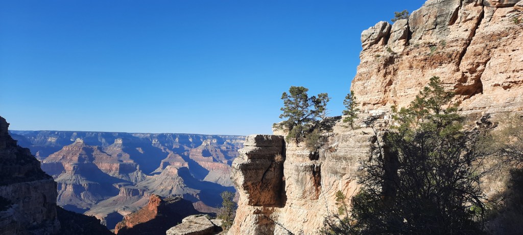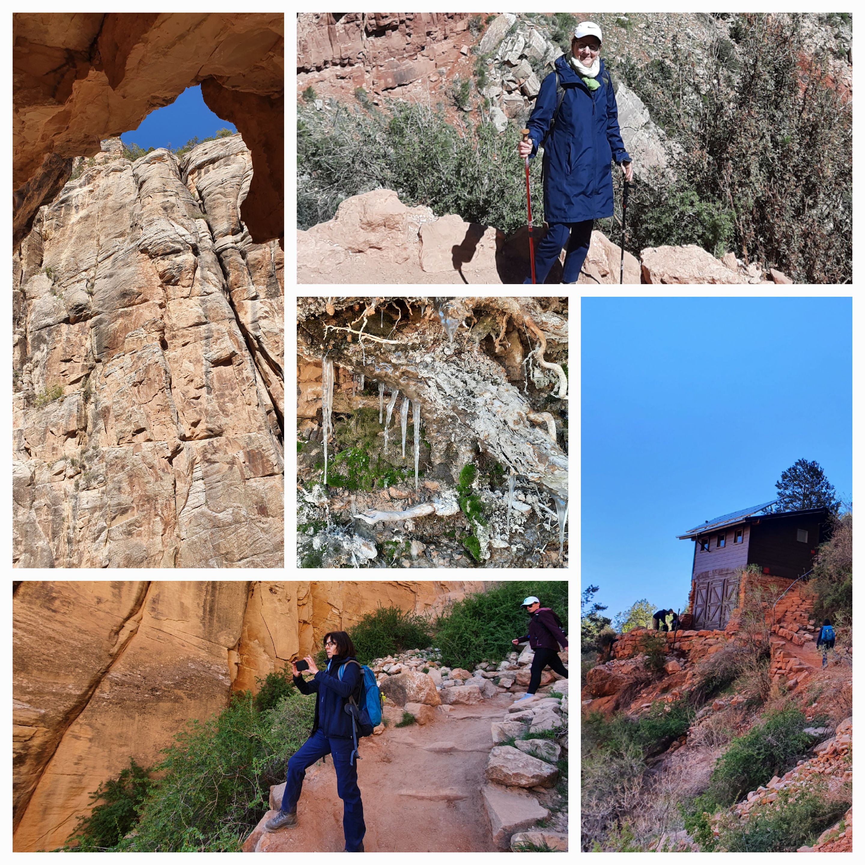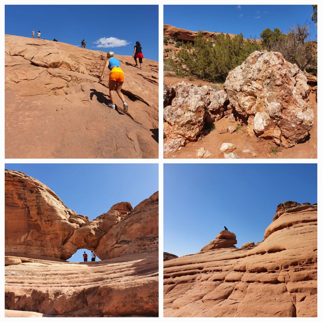 Beim erneuten Aufstieg ist die Sonne unbarmherzig und wir sind froh über Wasser, Stöcke und Hüte. An der Bridge, bei der es sich um einen Felsbogen von imposanten Ausmassen handelt, machen wir Rast im Schatten. Der Pie hat zwar durch den Transport deutlich gelitten, schmeckt aber wirklich sehr lecker.