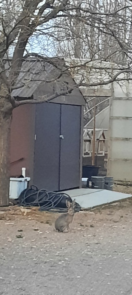 Am Nachmittag sind wir zurück in Torrey und besuchen den General Store für einen Kaffee (aus dem Pappbecher) und einen überzuckerten Kuchen. Ich habe danach erst einmal leichte Verdauungsprobleme. Im Schoolhouse angekommen schauen wir uns den eigentlich hübsch angelegten Hausgarten an, der leider in keinem guten Zustand ist. Und treffen wieder auf den Feldhasen. Von ihm gibt es deshalb jetzt auch eine bessere Aufnahme.